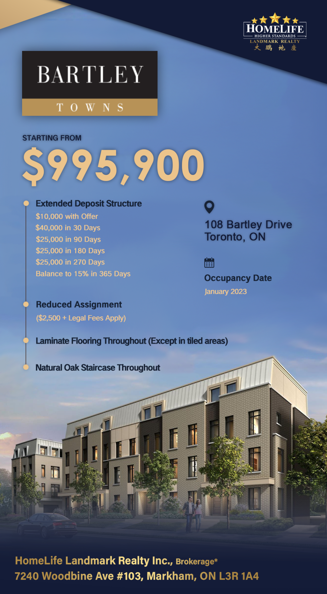 且附近的Eglinton和Victoria Park也有很多正在进行的重建项目。该计划包括一个全新的超市和另外260,000平方英尺的零售空间。该社区的长远目标是一个步行可及的社区,该社区拥有临街零售,自行车道和便捷的公交通道。所以Bartley Towns未来的生活环境和升值空间非常可观。